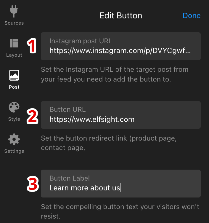 Click Done and Publish to apply the changes. The button will appear in the popup of the selected post:
