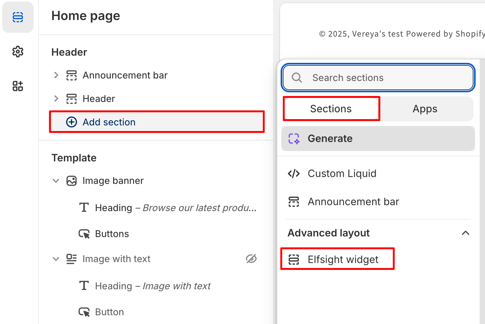 Adding Shopify Liquid Section for Elfsight Installation Code