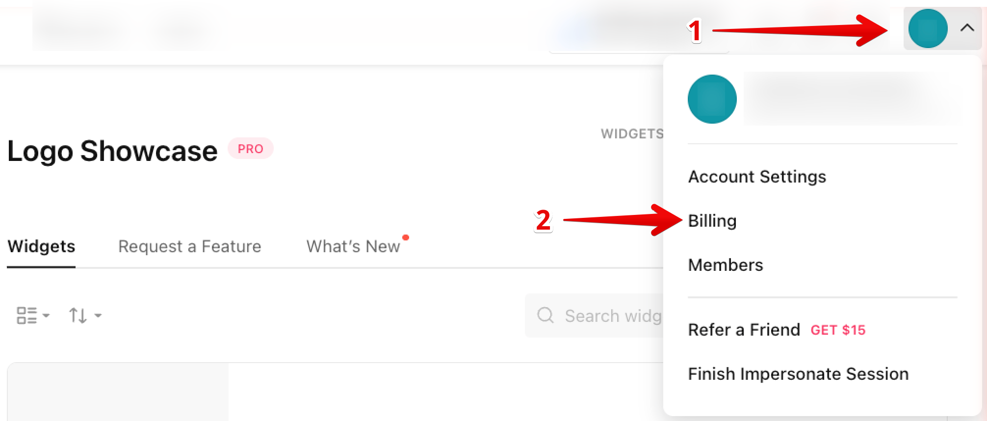 Open your Elfsight Dashboard and navigate to the Billing section: