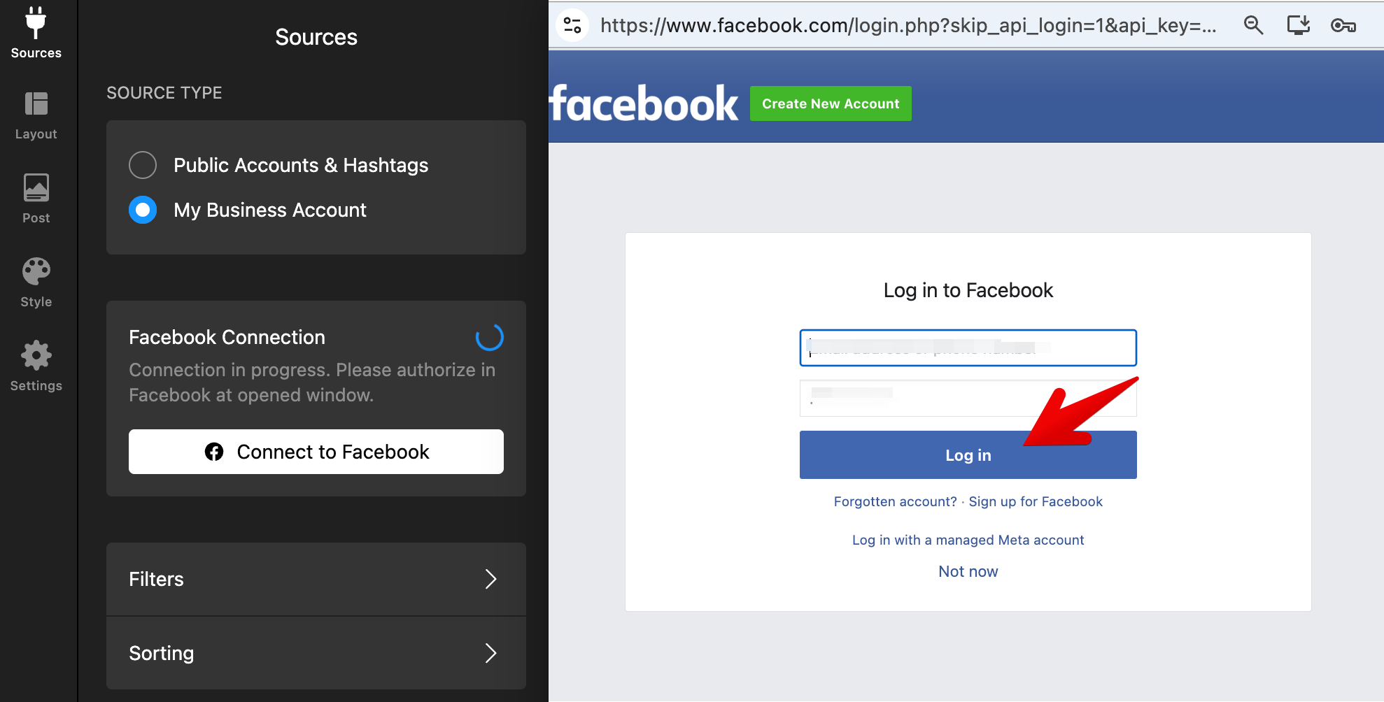 Log in to your Facebook account: