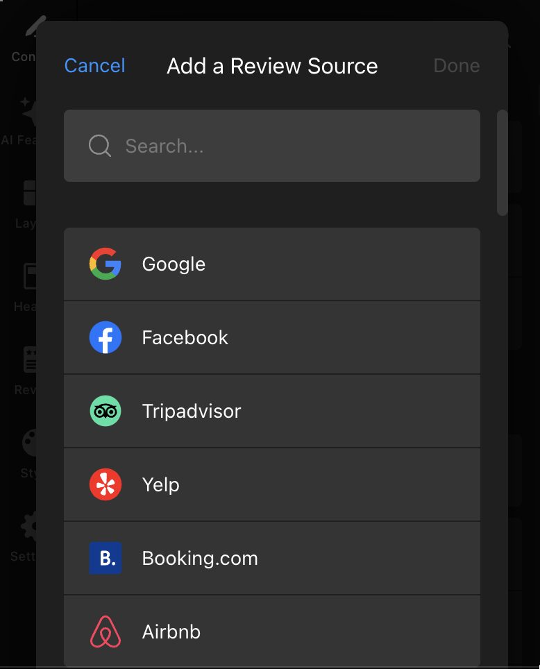 If you have reviews on different platforms (for example, Google and Tripadvisor), simply select the required platforms from the list of available sources.