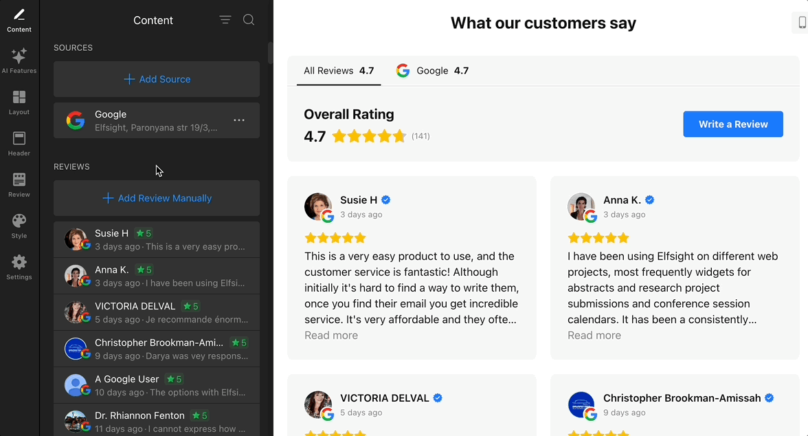 Feeling stuck adding your Google reviews? Follow this guide for detailed instructions: Adding your Google reviews to Elfsight widget. - 3