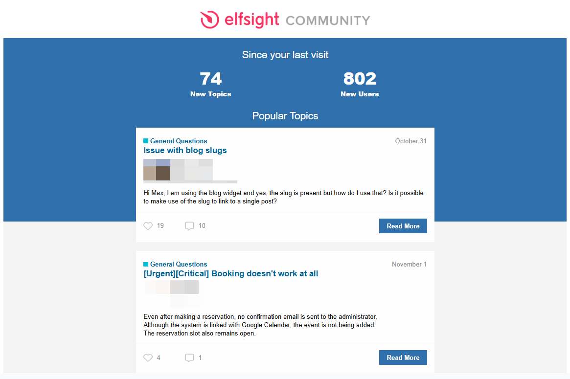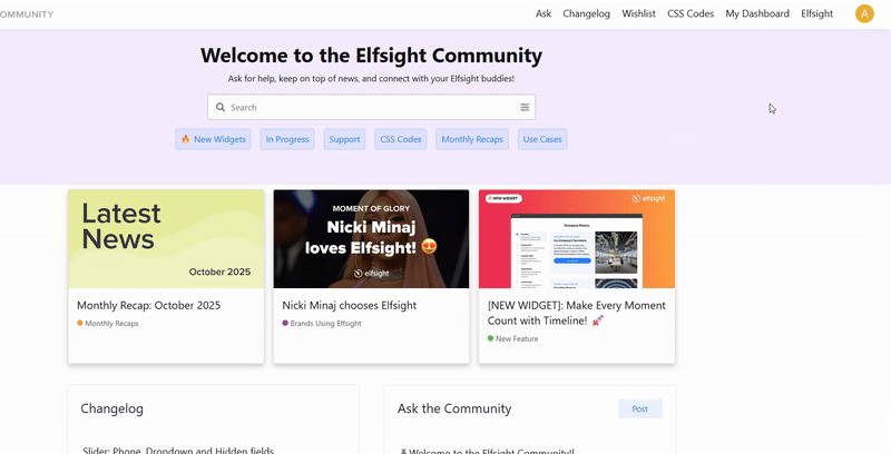 Our monthly newsletter includes updates on the latest releases and Elfsight Community news: