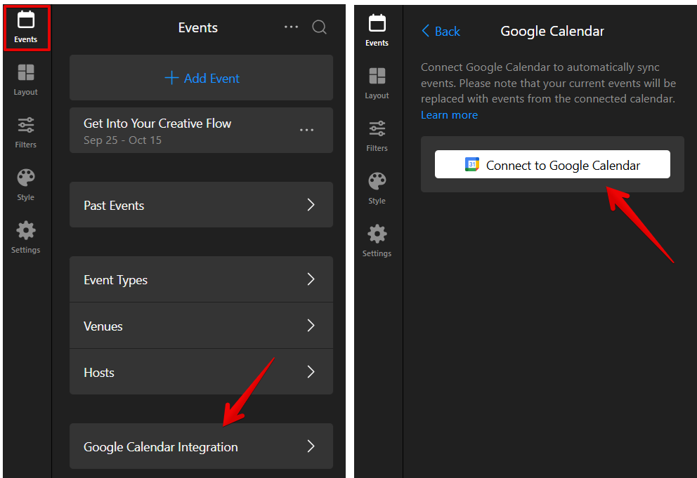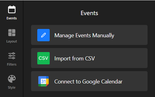 Follow these steps to connect Google Calendar to your Event Calendar app, whether you're starting from scratch or already have manually created events.