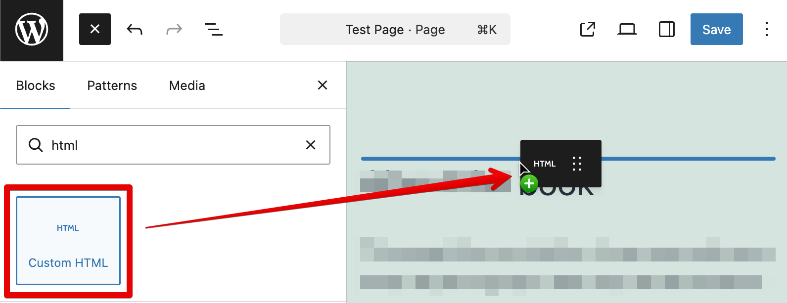 Find Custom HTML and drag and drop it to the spot where you'd like to display the widget: