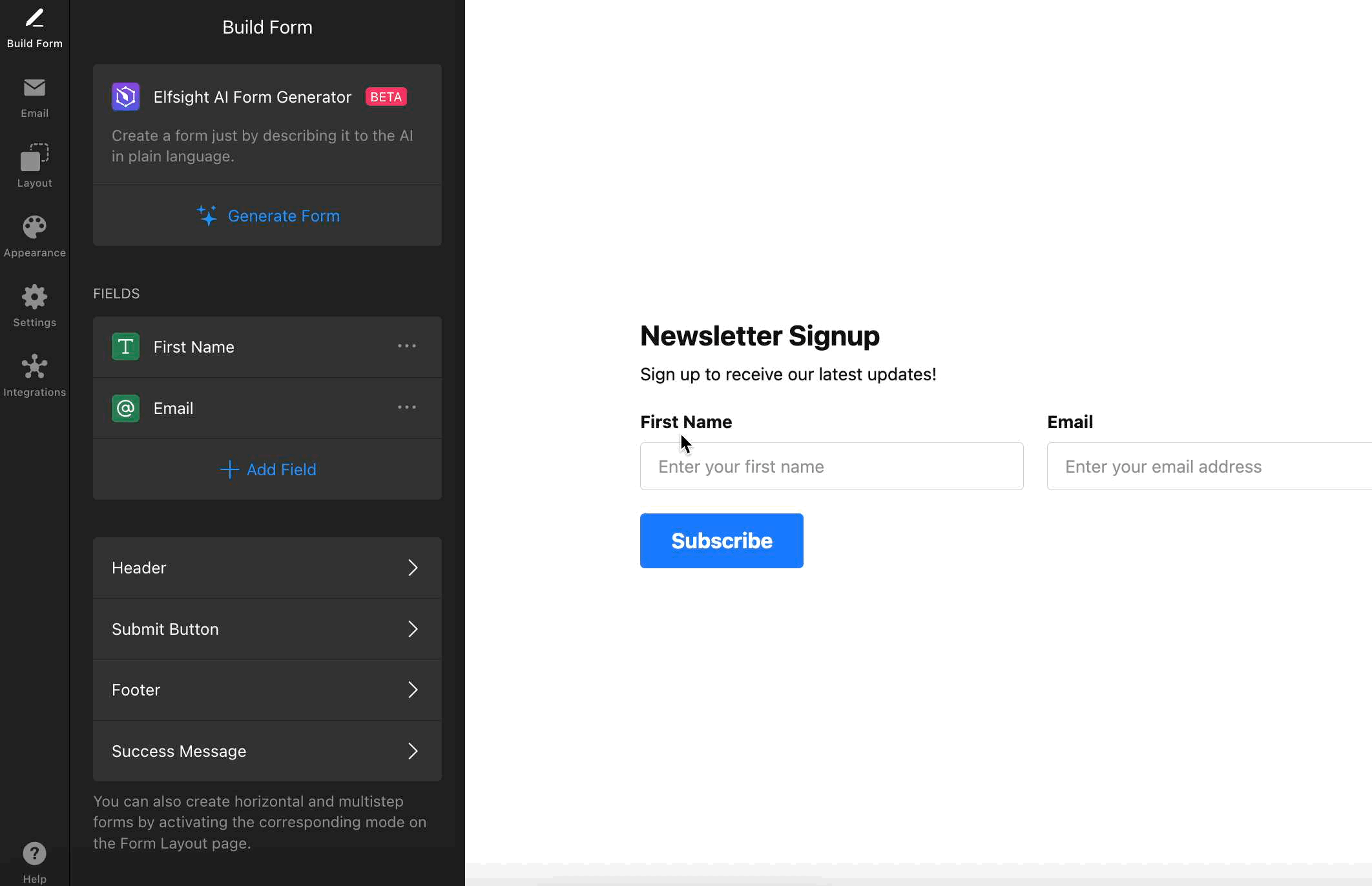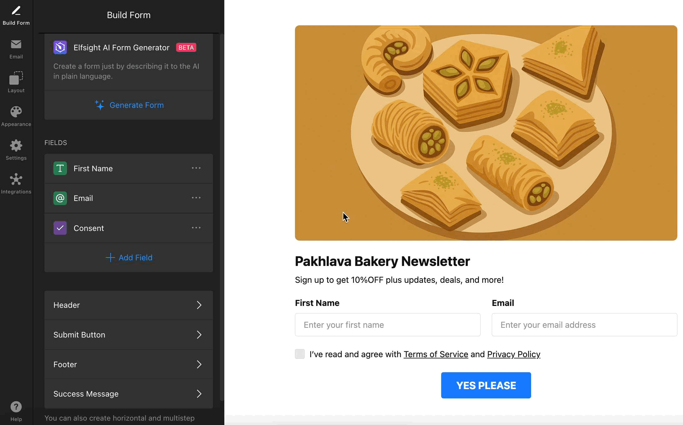 That’s it! 🎉 You’ve just built the base of your form. Next, you’ll learn how to connect your form to email and integrate it with your favorite tools.