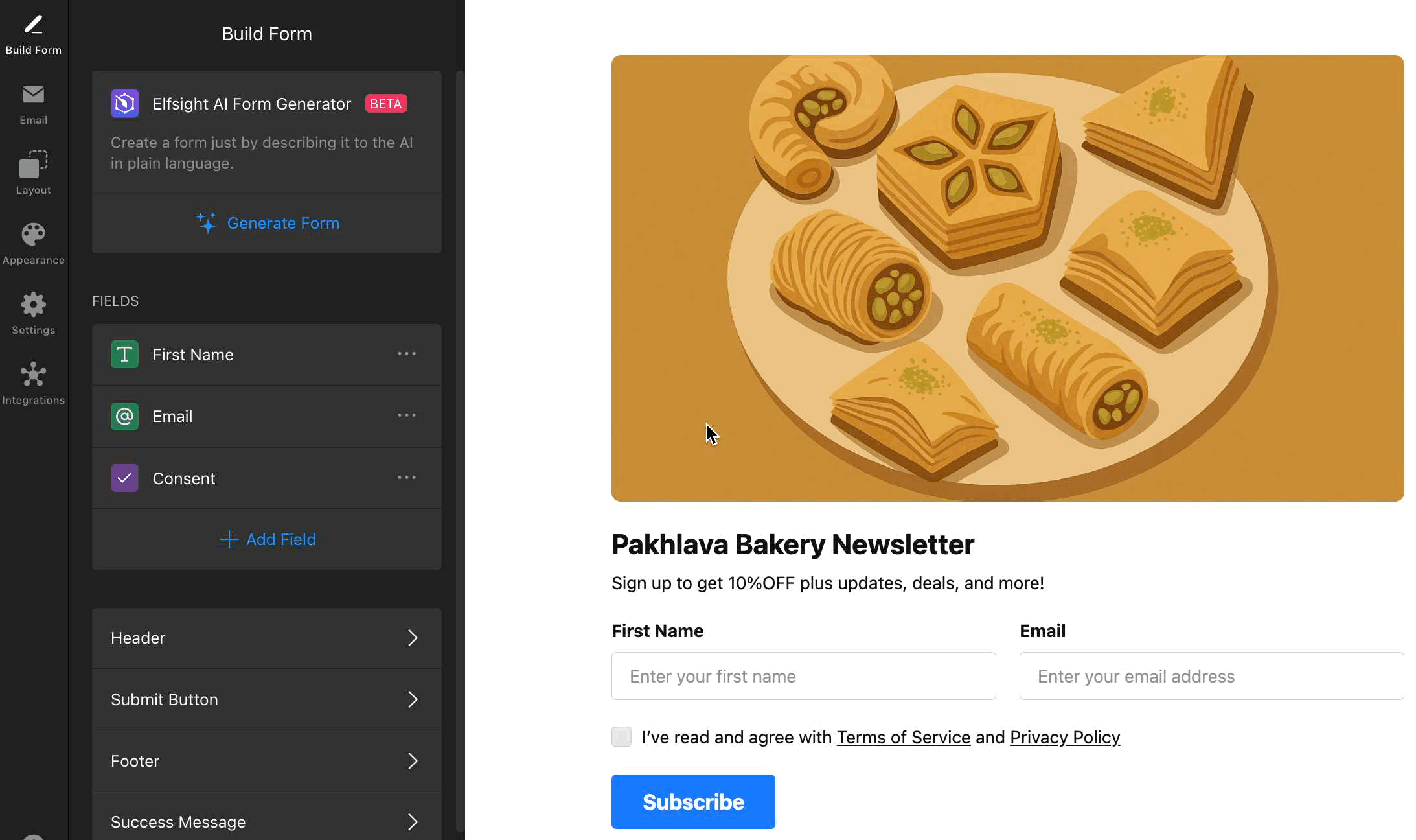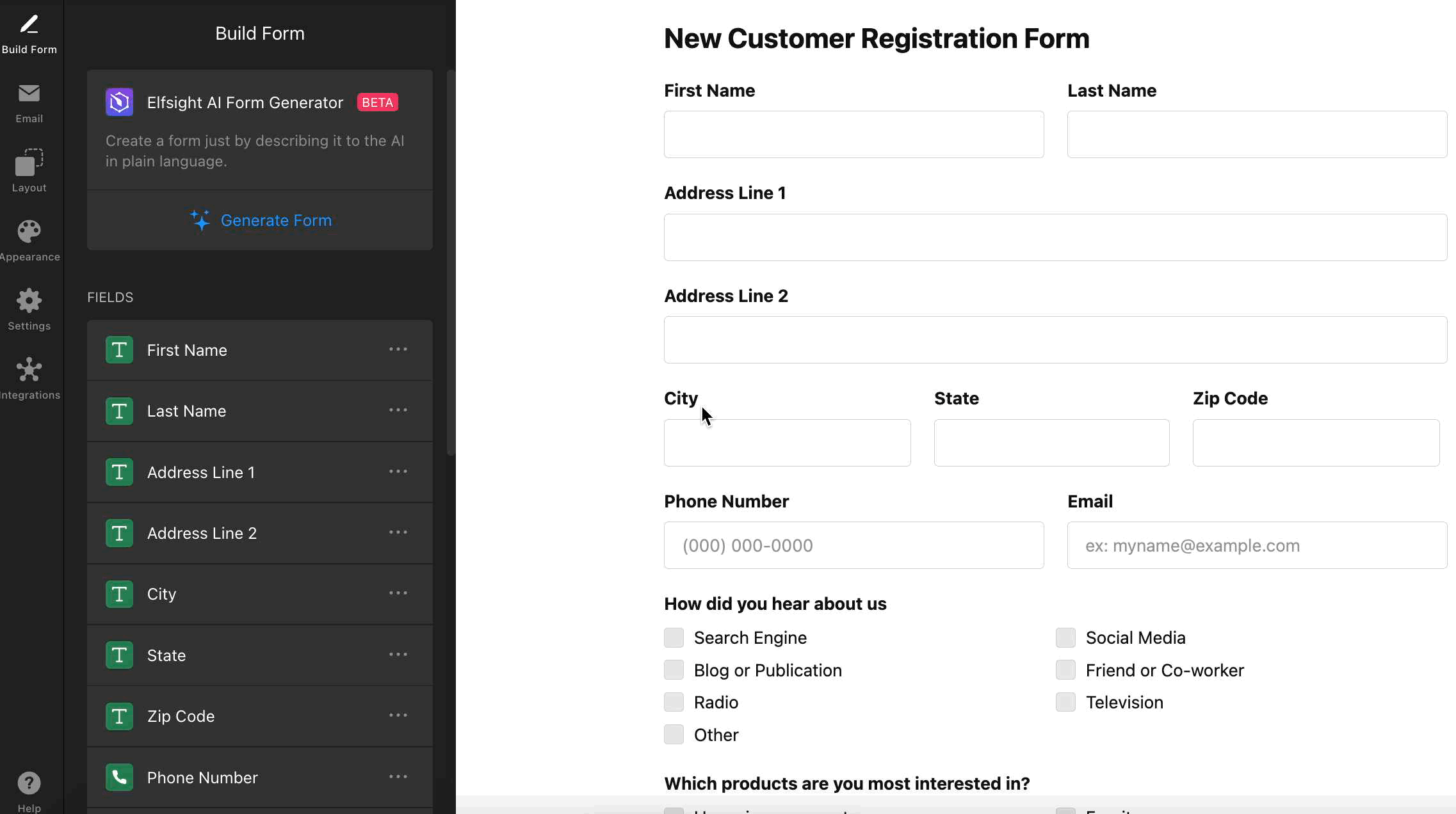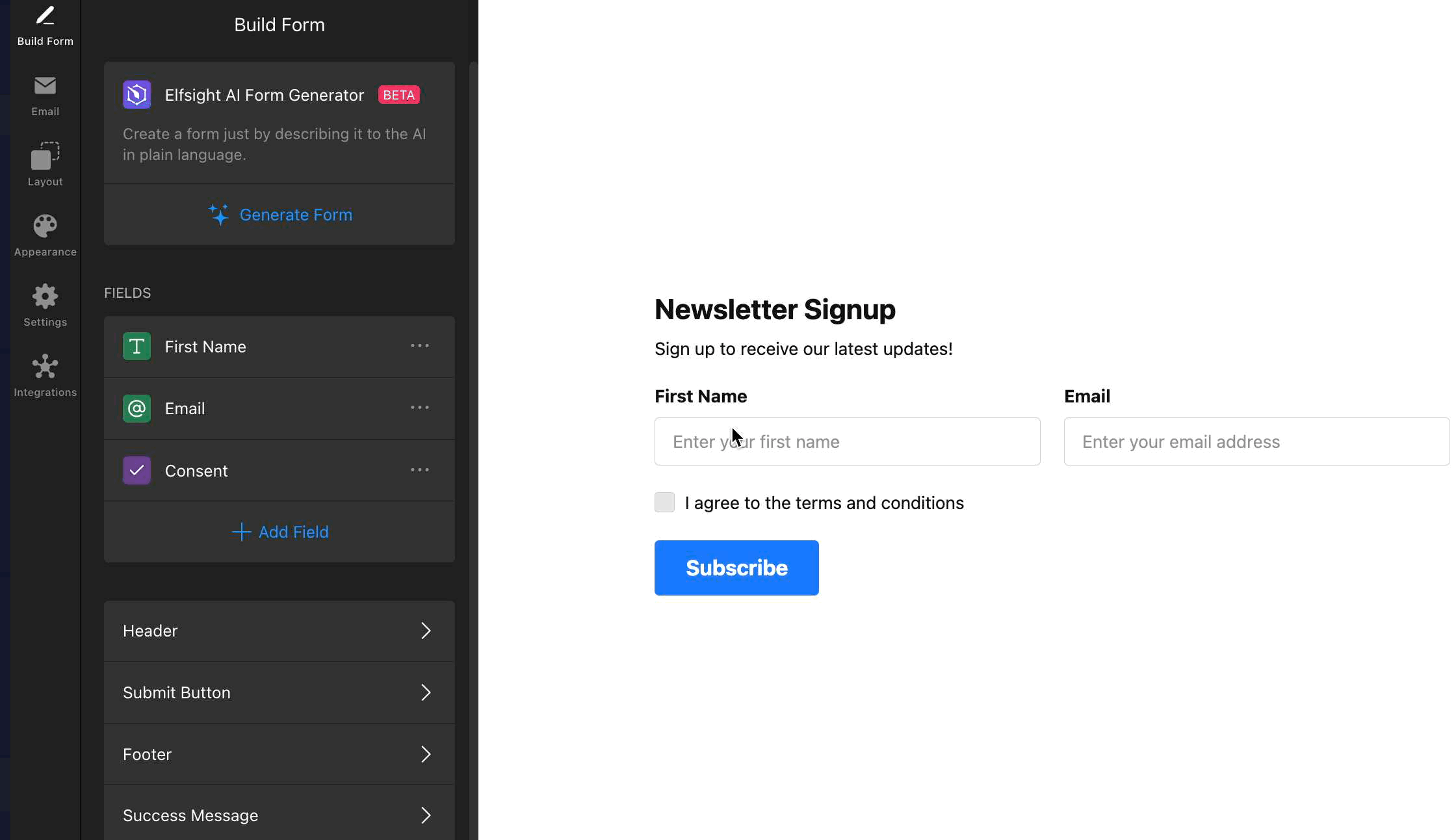 To use the AI Form Generator, go to to the Build Form tab and click Generate Form: