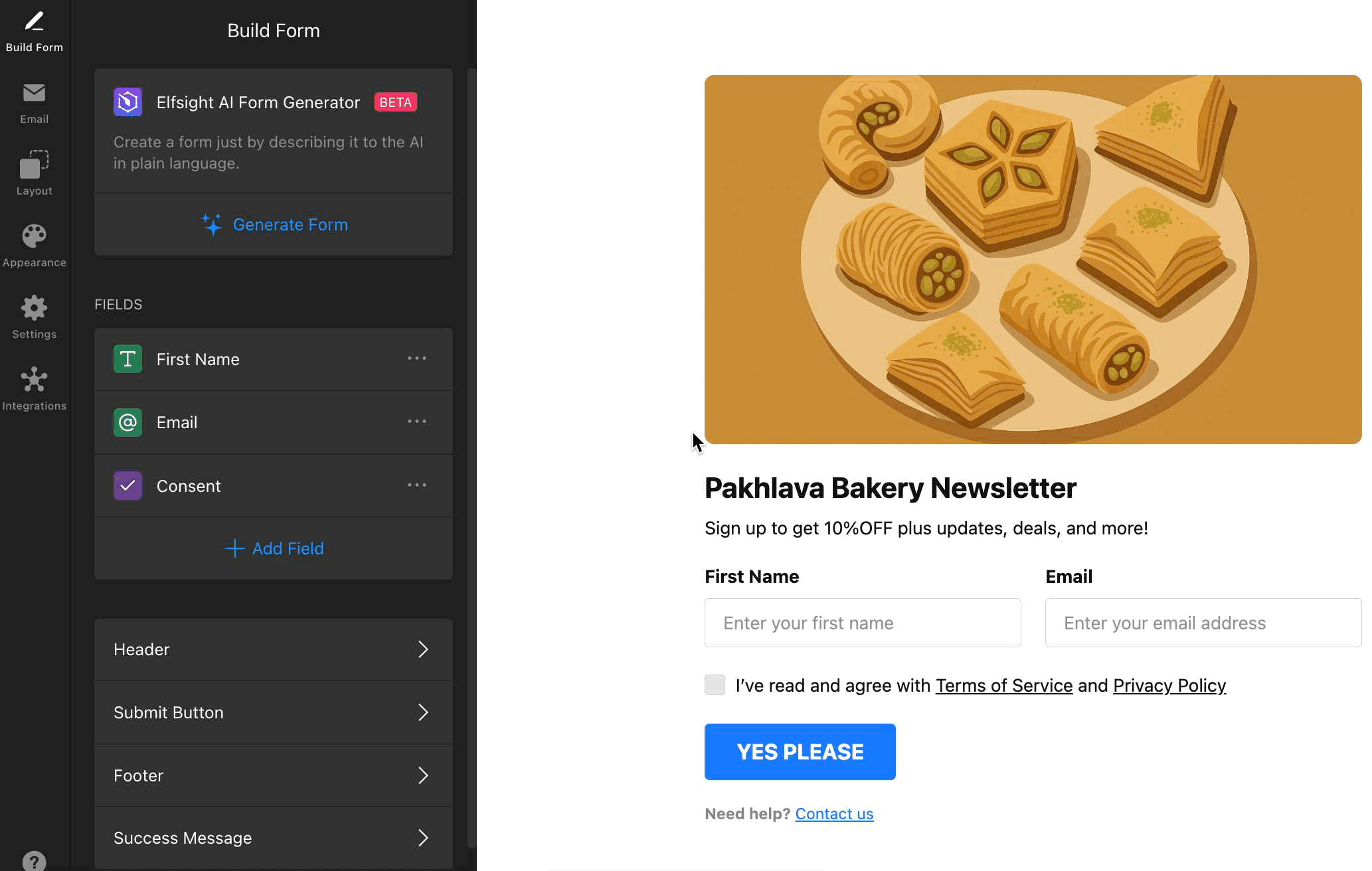 Once you've built your form, it's time to make sure you receive submissions and connect your form with your favorite tools. In this step, we'll cover how to set up Email Notifications and Integrations in your Elfsight Form Builder widget.