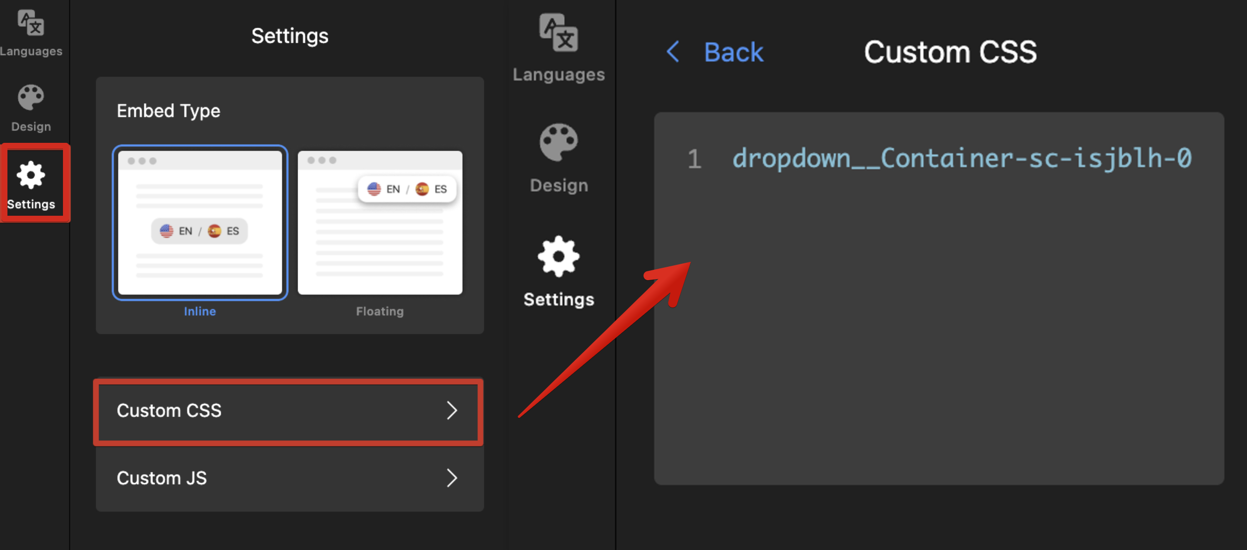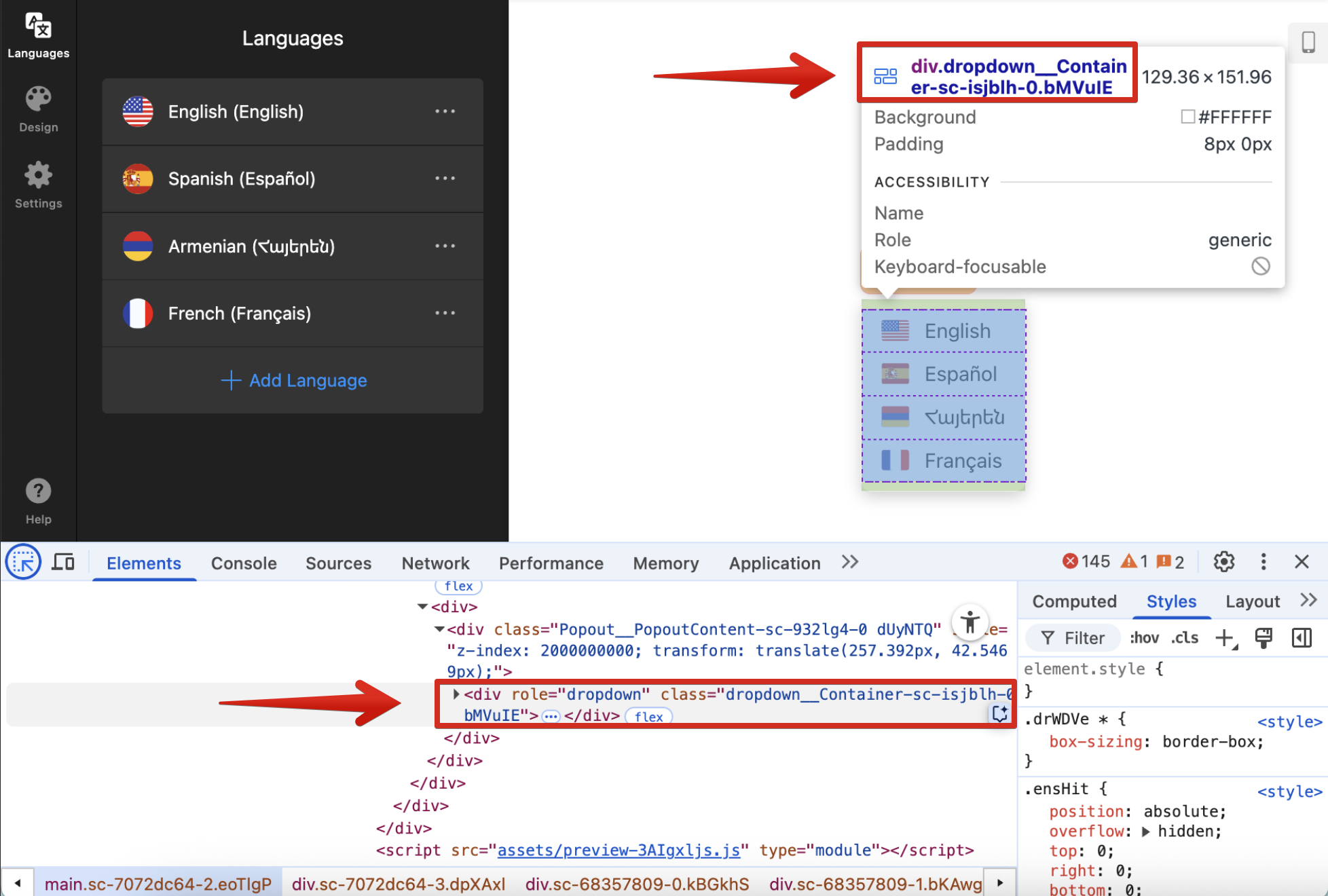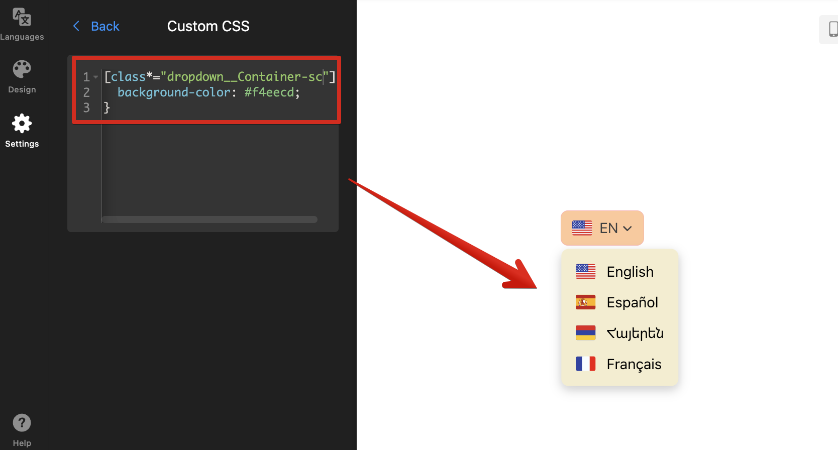 Now that you know the basics, let’s create a CSS rule! As an example, we’ll change the background color of the dropdown menu in the Website Translator widget.