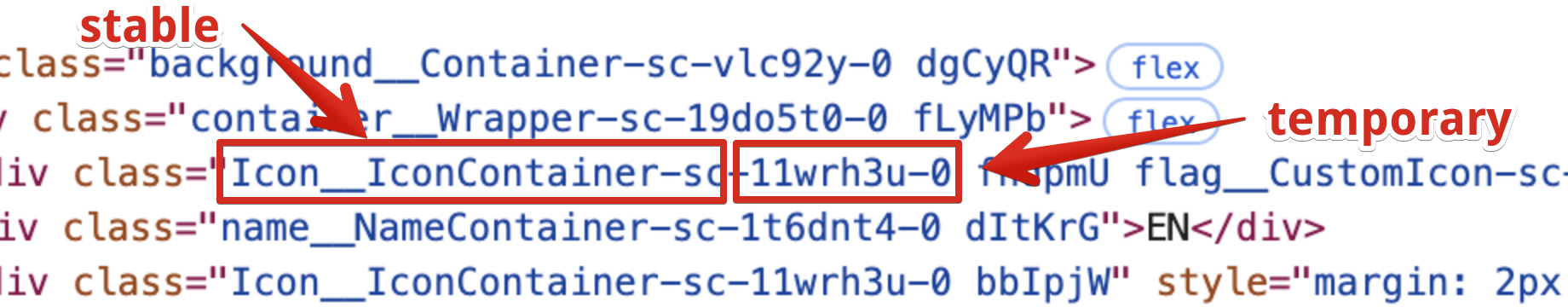 Icon__Container-sc) with temporary suffixes (e.g.,-11wrh3u-0):