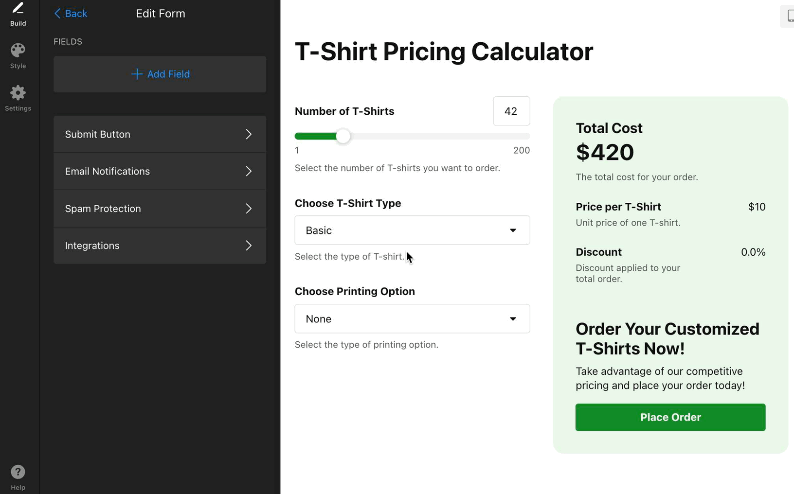 Nicely done! Your Calculator can now collect submissions, notify the right people, protect against spam, and send results to your favorite tools. ✨