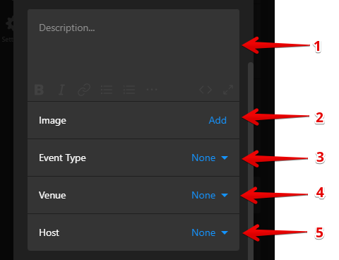 Description — Add a detailed description for your event. Use text formatting (bold, italic, etc.) to highlight important details.