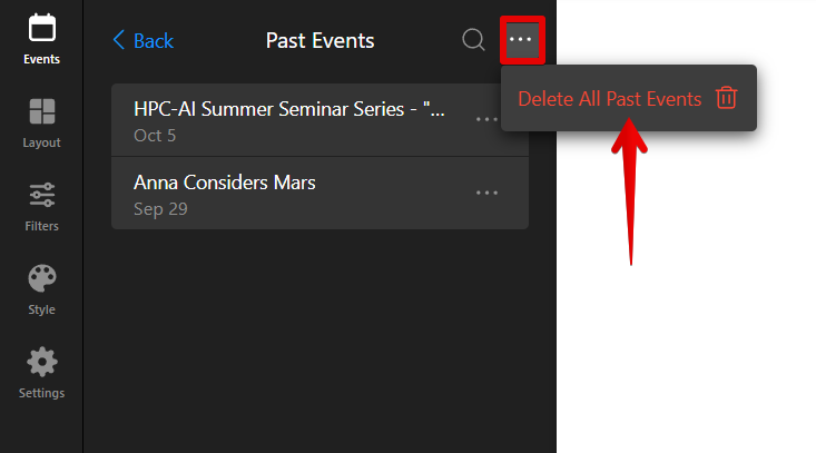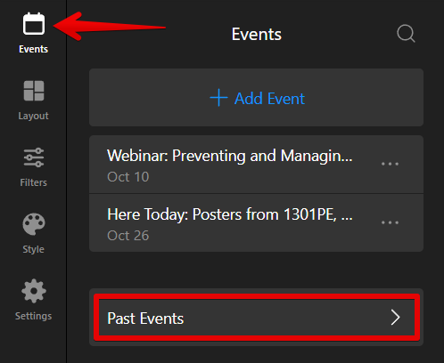 Additionally, you can manage your past events directly from the Events tab. Just click on the Past Events section: