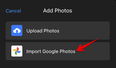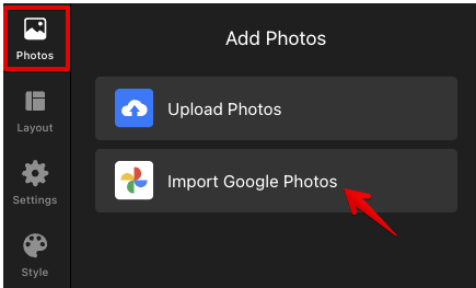 In the widget editor, go to the Photos tab and click Import Google Photos: