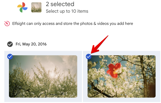 A picker window will open with your albums and photos. Select up to 10 images you'd like to import: