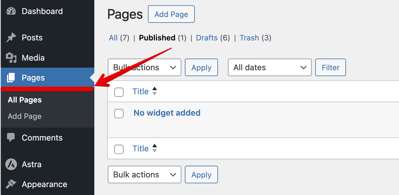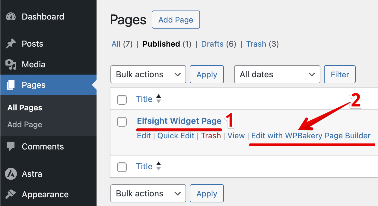 Log in to your WordPress dashboard and navigate to Pages:Hover over the page title where you’d like to add the widget and click "Edit with WPBakery Page Builder":
