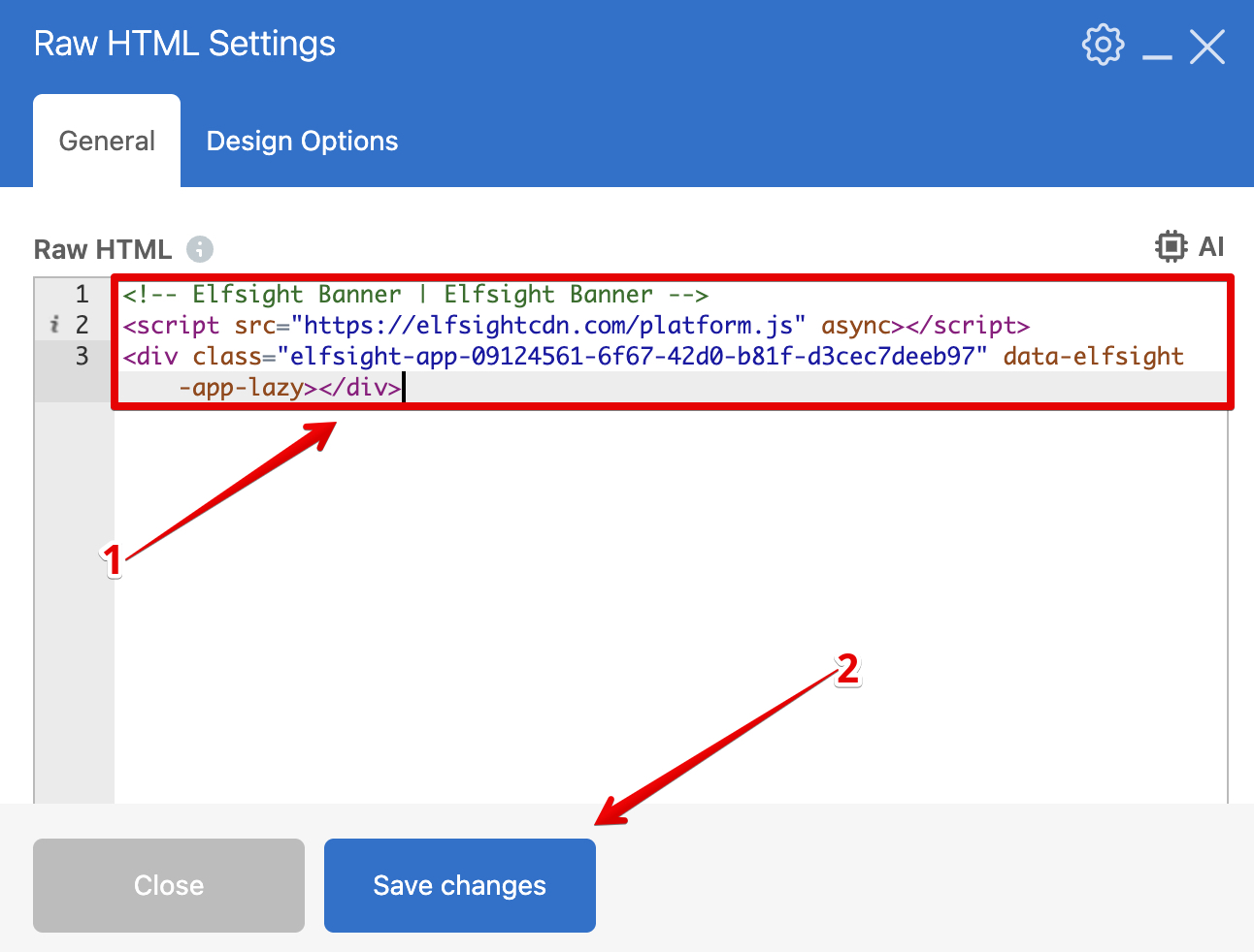 You can also use the Raw JS element, but note that it won’t display the widget in editor mode. Don’t worry — your widget will appear correctly on the live site! - 3