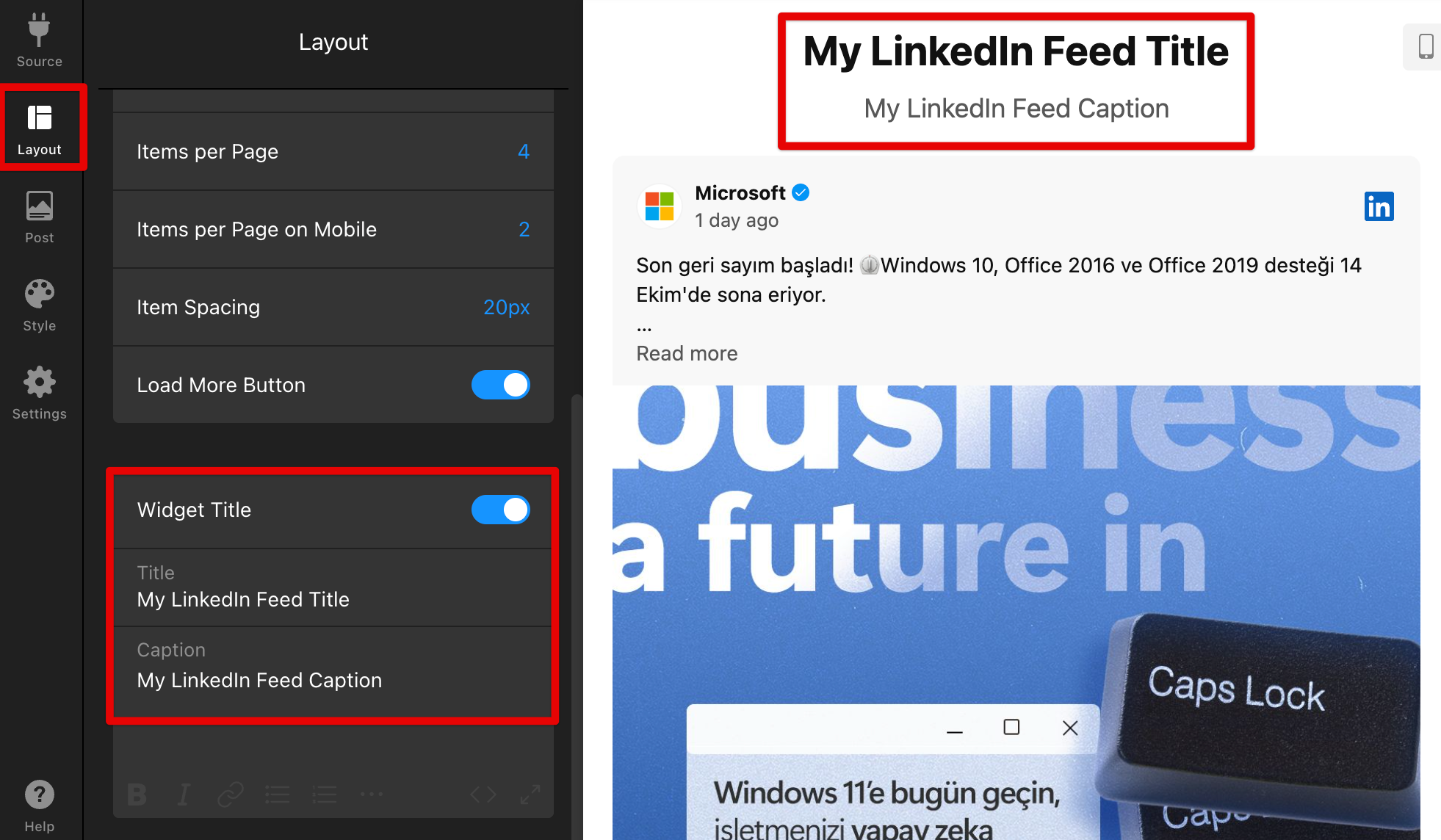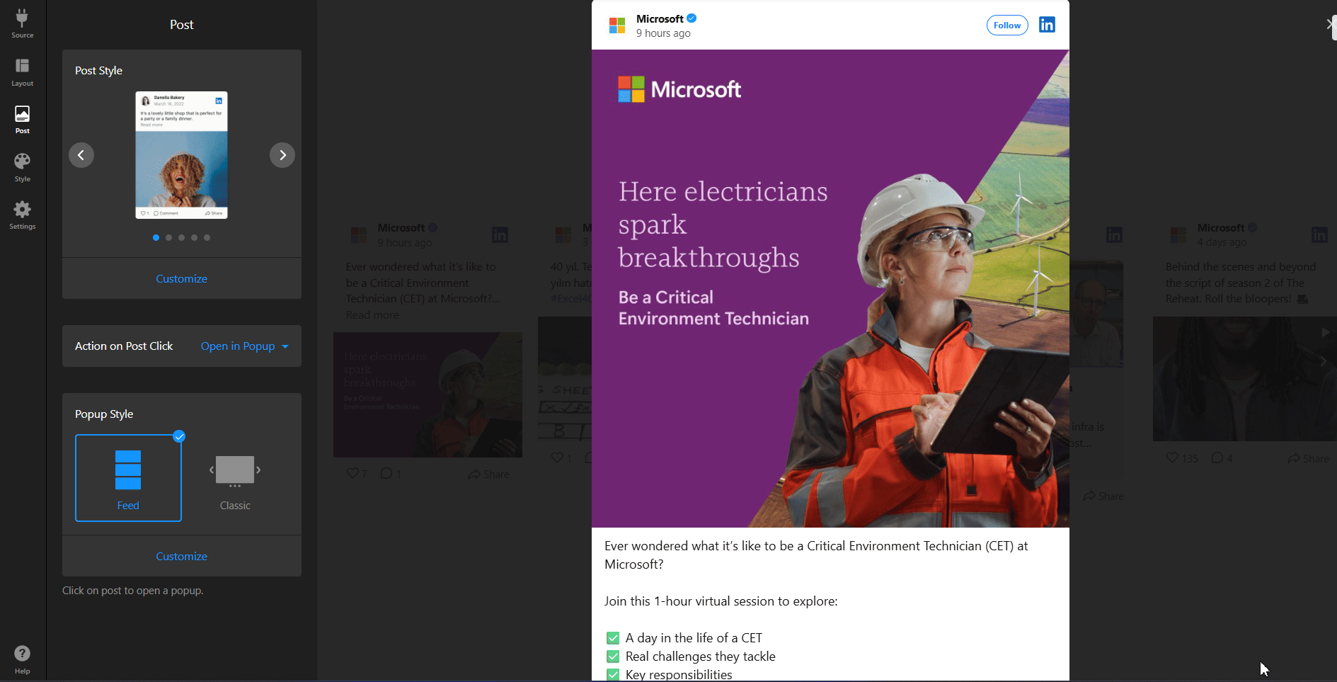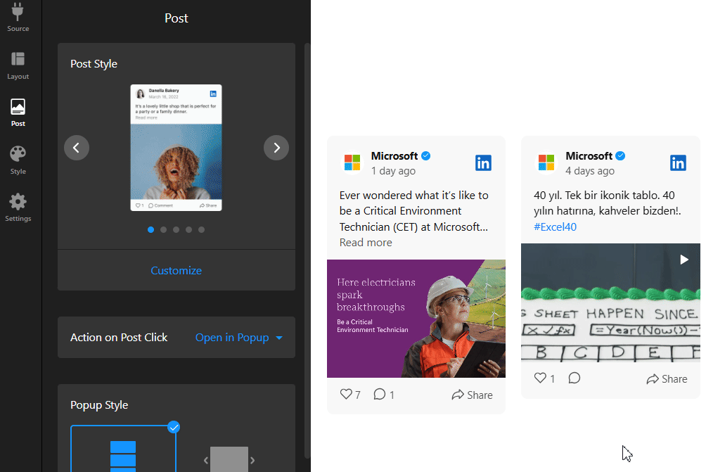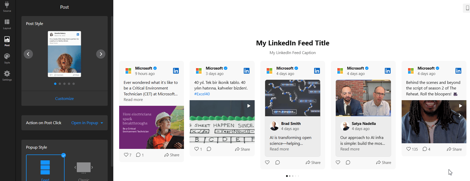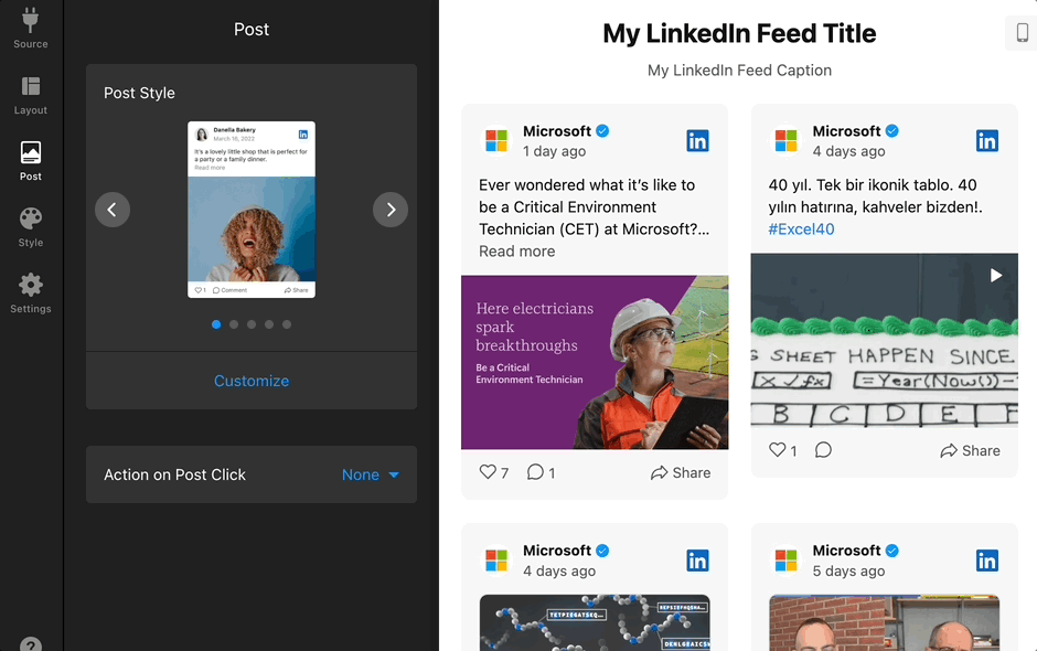 Great job!🎉 You’ve finished setting up the layout and post style of your LinkedIn Feed widget.