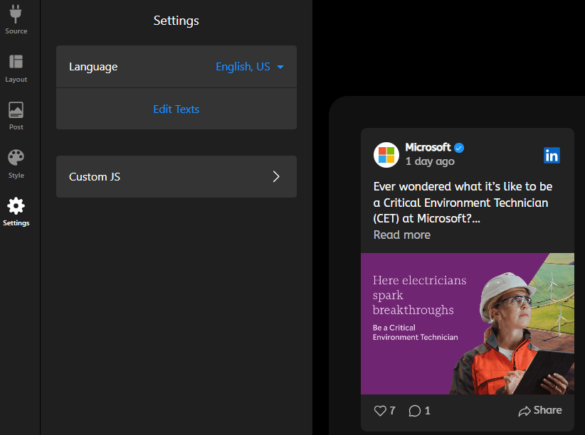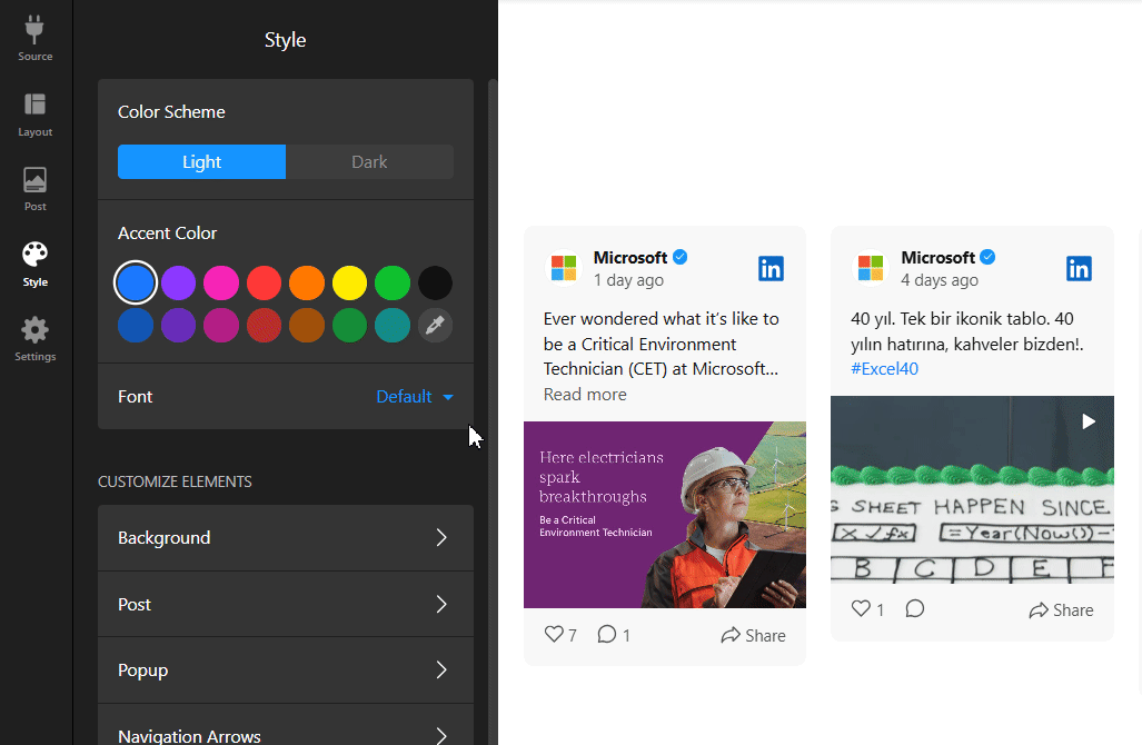 Personalizing your LinkedIn Feed widget is a great way to align it with your website’s design and improve user experience. In this article, we’ll walk you through how to customize your LinkedIn Feed by adjusting colors, fonts, language, and more.