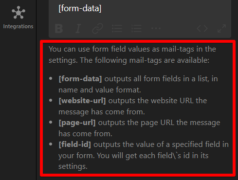 You can find the available mail-tags listed below the Message field:  Now, your Subscription Form widget will send submissions straight to your inbox.