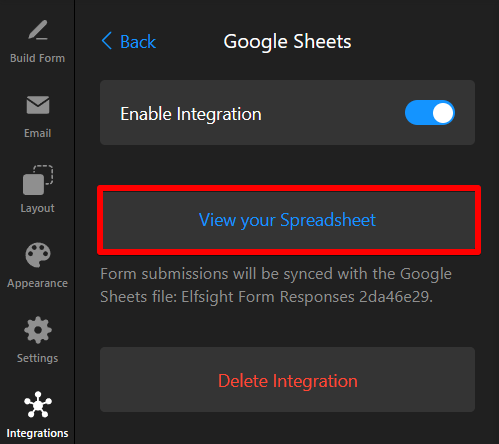 Once you're connected to Google Sheets, you will be able to view your Subscription Form submissions by clicking View your Spreadsheet: