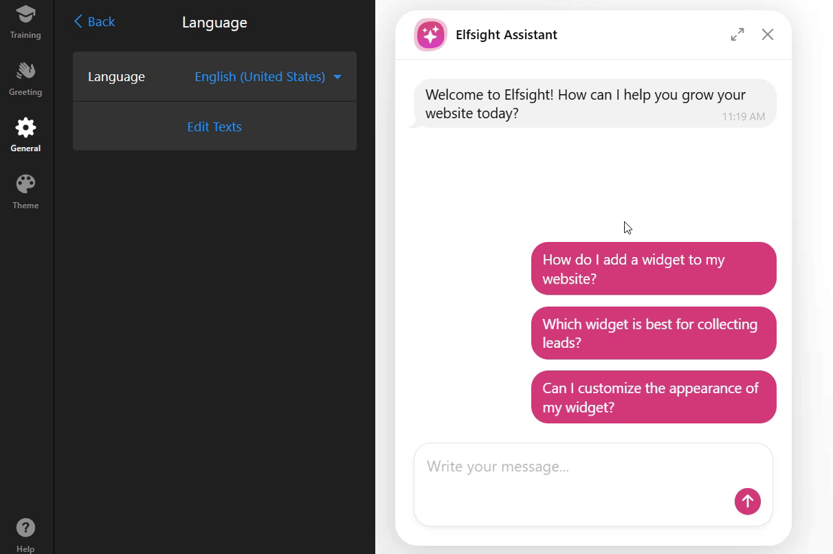 Don’t like the default text in your AI Chatbot? No worries! You can easily edit them by using the Edit Texts option. Simply find the text you’d like to change and replace it with your own: