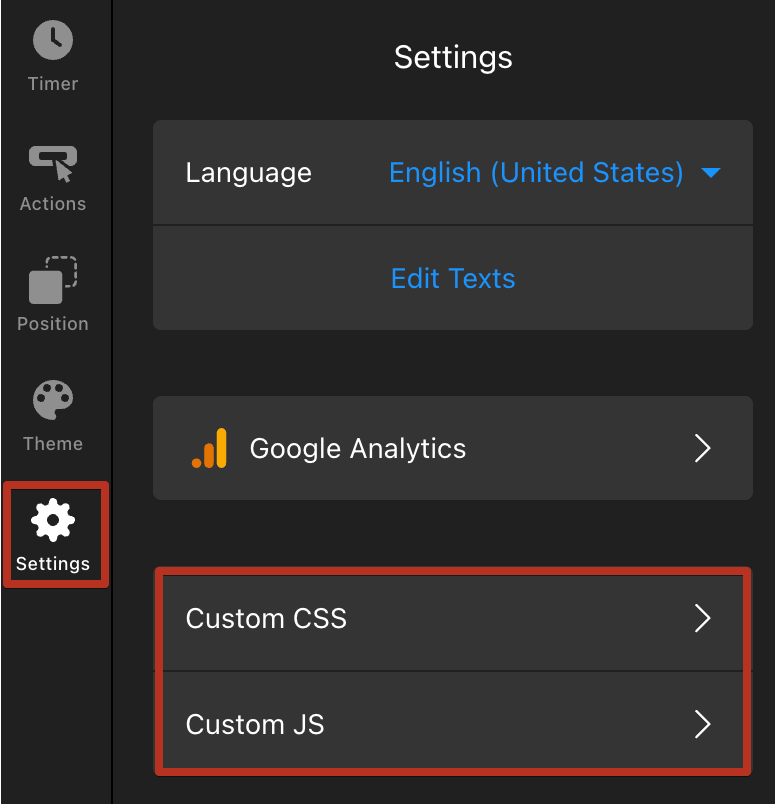 Use Custom CSS for advanced styling or Custom JS to extend your widget’s functionality and integrate with other tools: