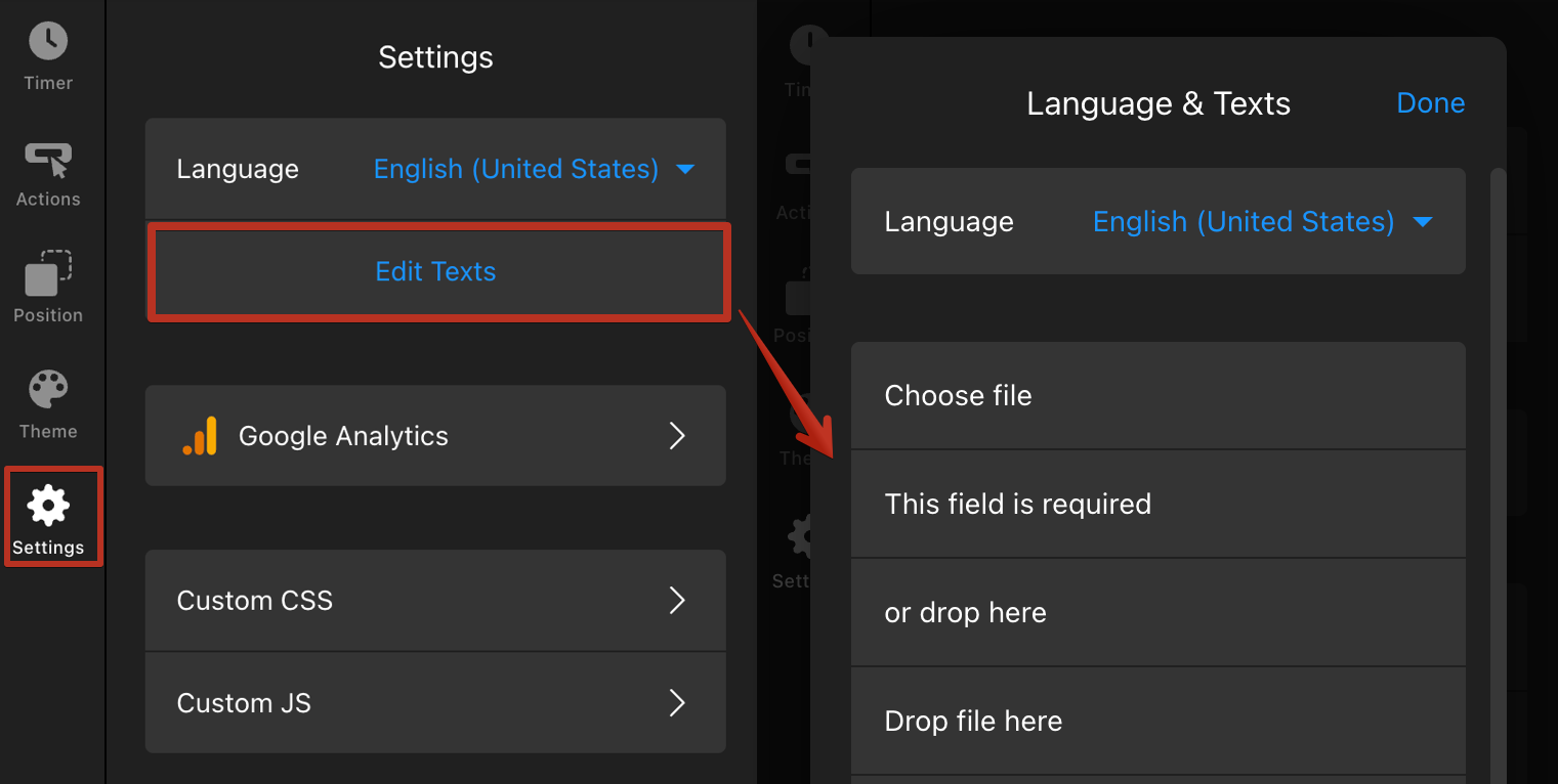 Want to change default labels or form messages? Just click Edit Texts and replace them with your own wording:
