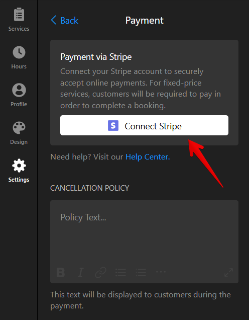 Follow these steps to connect Stripe and enable payments in your Appointment Booking widget: