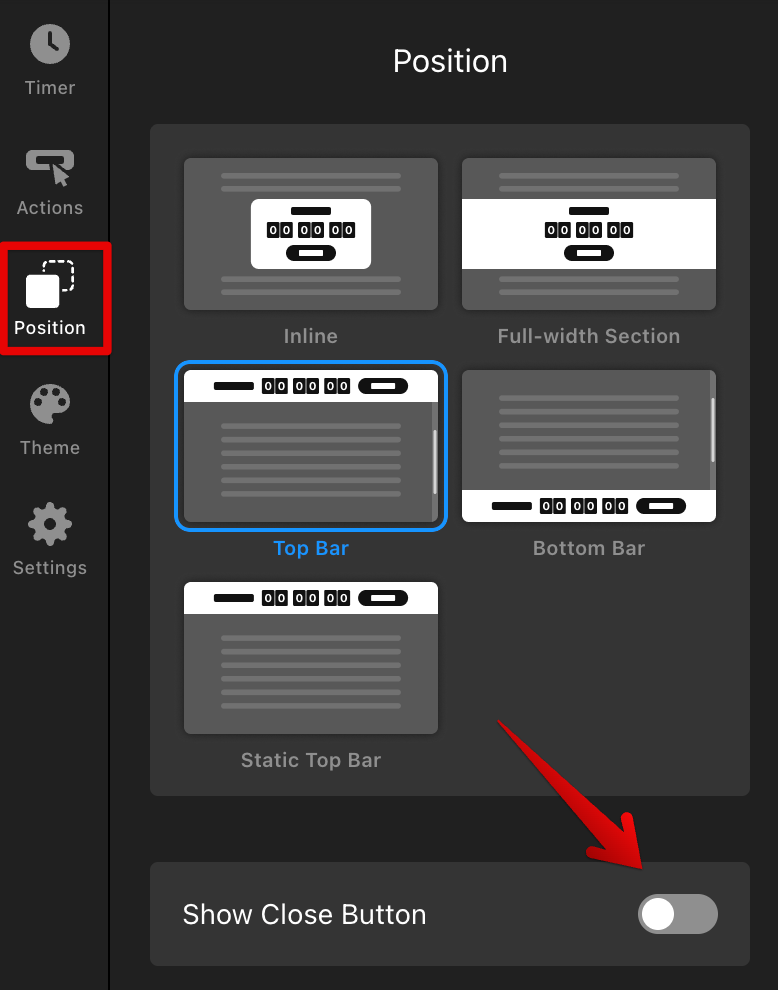 If your timer uses a Top Bar, Bottom Bar, or Static Top Bar layout, visitors can close it by clicking the Close (X) button. Once closed, the widget remains hidden for that user: