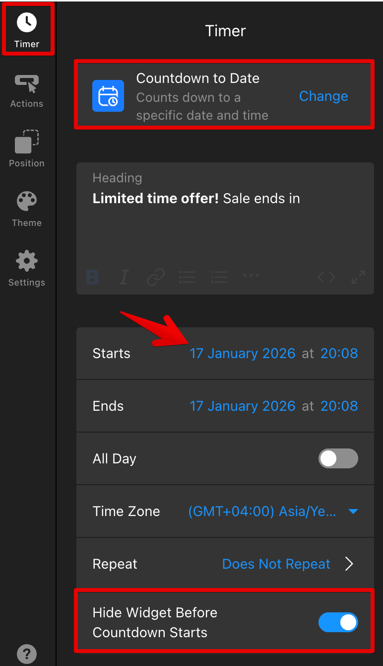 2. Check Start Date (Countdown to Date Timers Only)