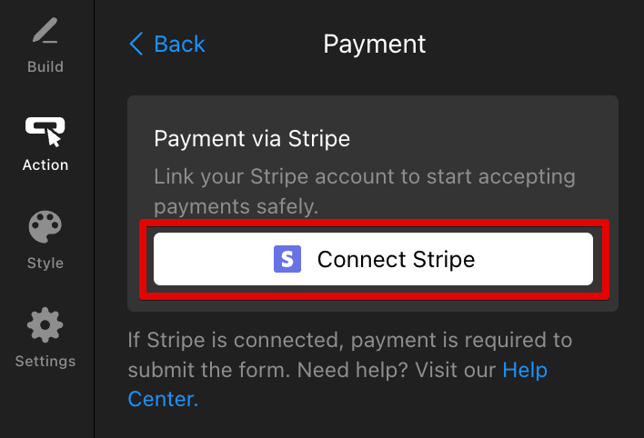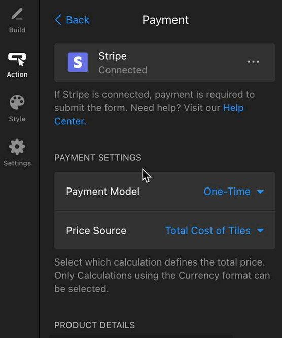 Once Stripe is connected, you’ll need to select a Price Source (a calculation that defines the total price). After that, payment will be required to submit the form.