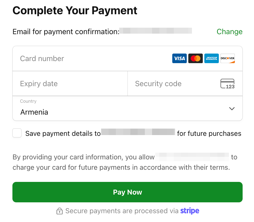 Nicely done! 🙌 Your widget is now ready to accept payments. Here's how the payment form will appear to your customers: