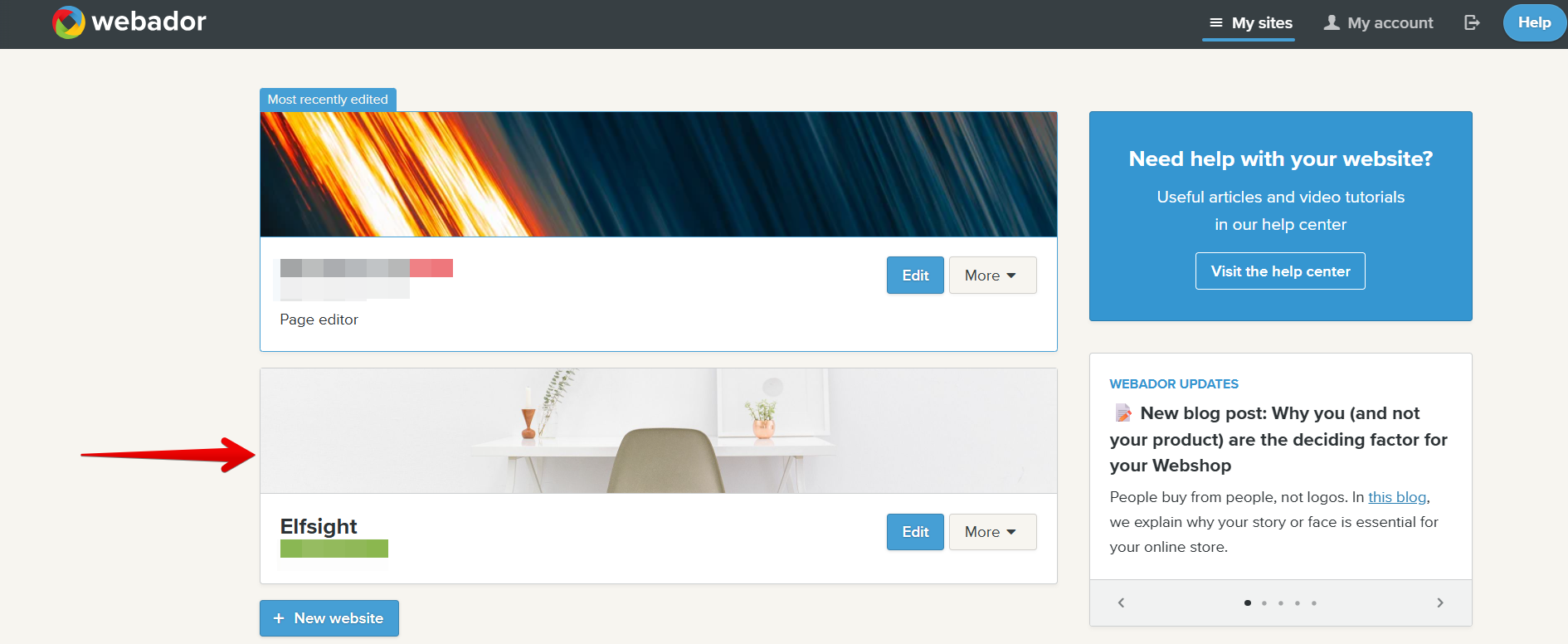 Log in to your Webador dashboard and click on the website where you'd like to install the widget: