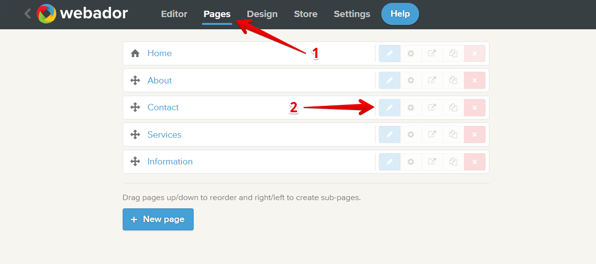 To add the widget to a specific page, go to Pages in the top bar and click the Edit ✏️ button next to the page: