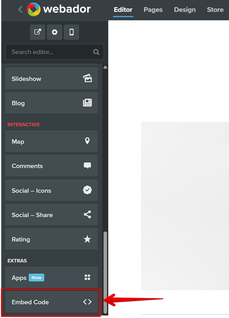 Please note that the embedded widget won't be visible in the Webador Editor and will only appear on the published site. - 4