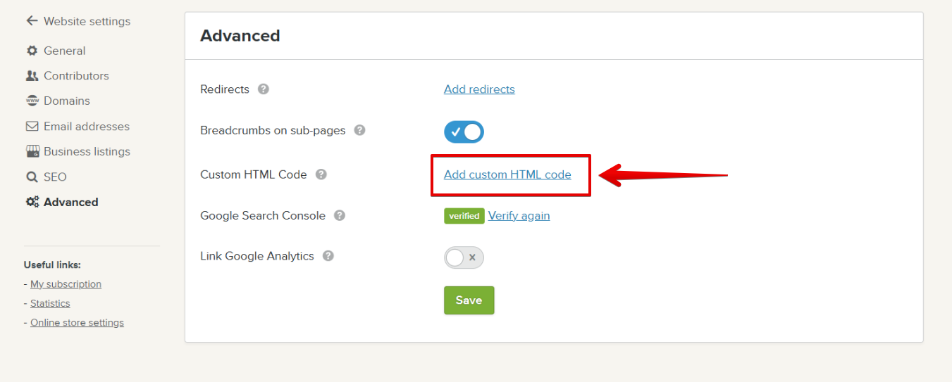 Click Add custom HTML code: