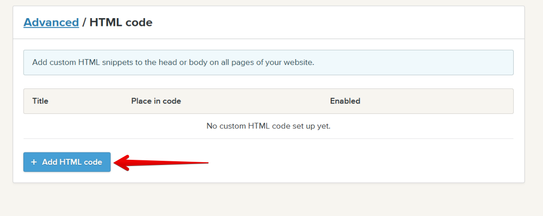 On the new page, press the + Add HTML code button:
