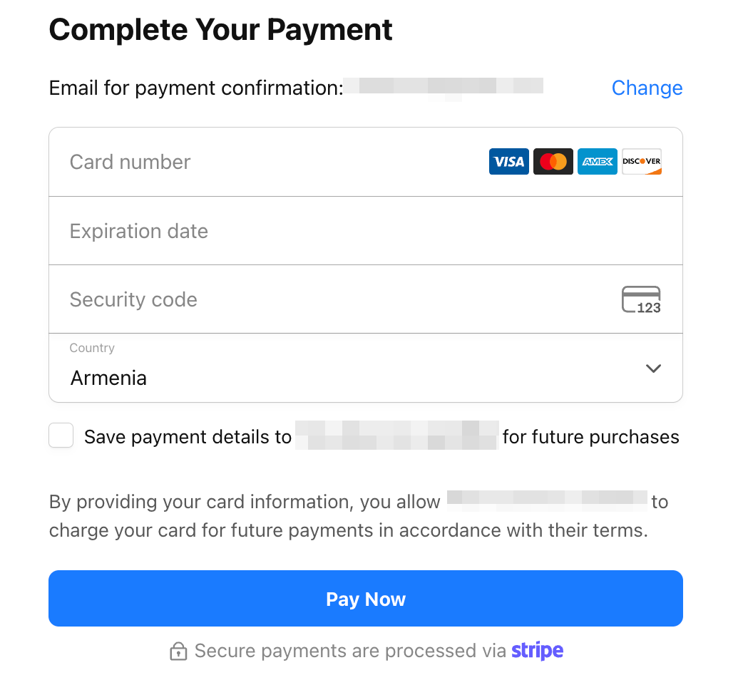 Success! 🎉 Stripe is now connected. Here's how the payment form will appear to your customers: