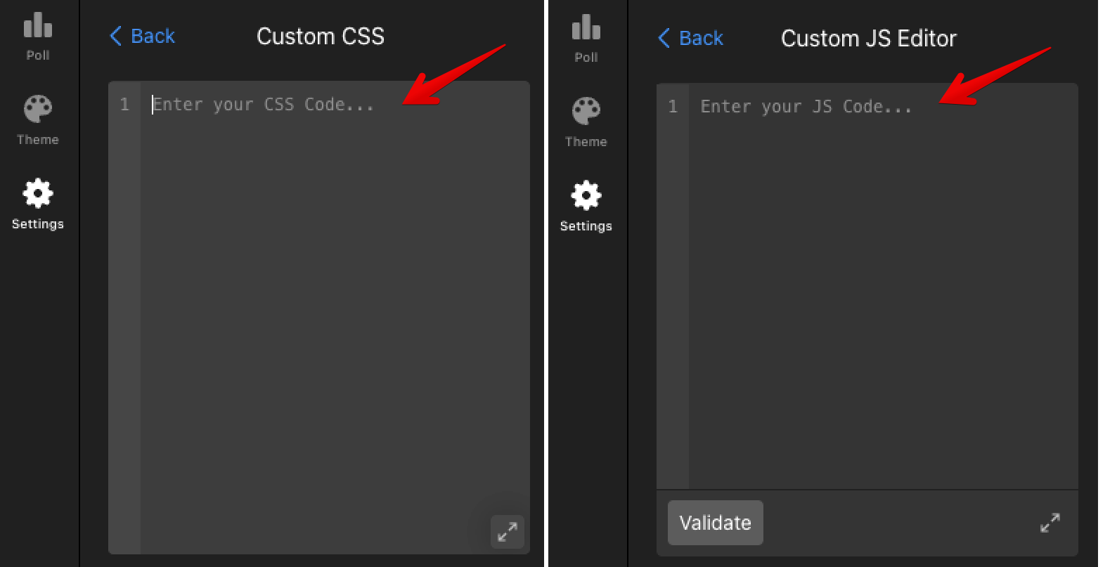 Custom CSS & Custom JS — Add custom JavaScript and CSS for additional customization.