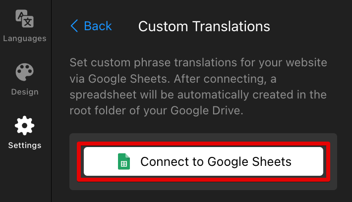 Follow these steps to connect your Website Translator widget to Google Sheets and enable custom translations: