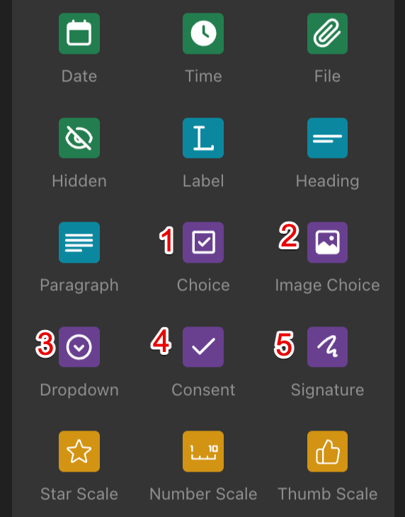 • Image choice: Similar to Choice, but allows for image-based options