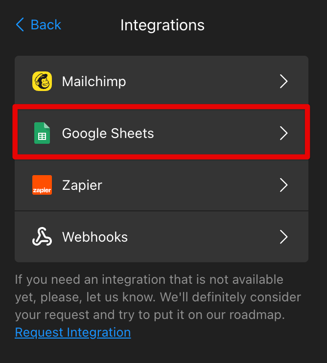 Once you're connected to Google Sheets, you will be able to view your Popup submissions by clicking View your Spreadsheet: