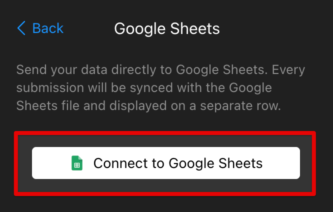 Select Connect to Google Sheets and log in using your Google account: