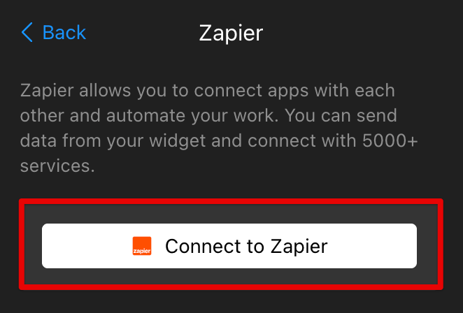 Click Connect to Zapier: