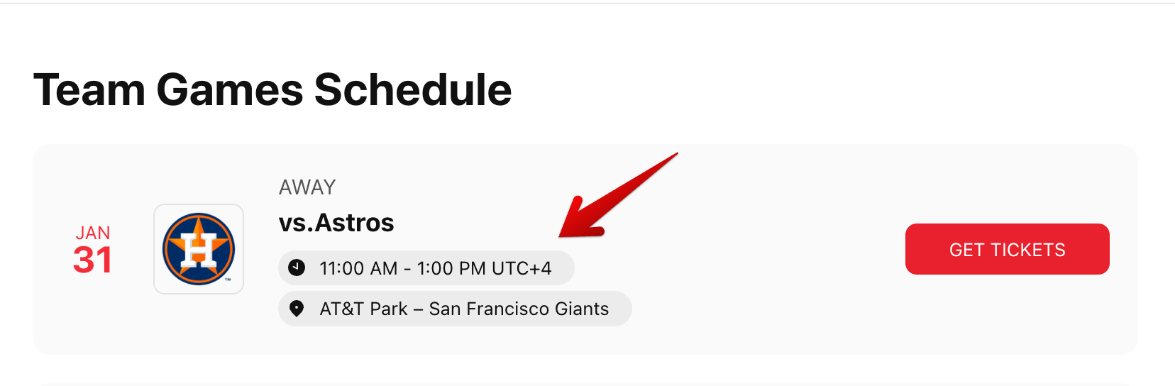 Great! Your events are now displayed in the selected time zone. For visitors in other regions, the time zone label will appear next to the event time: